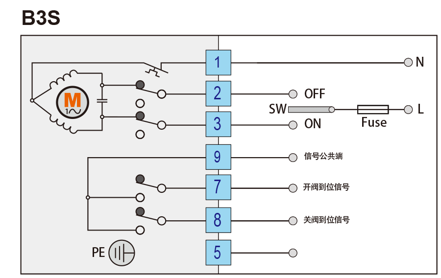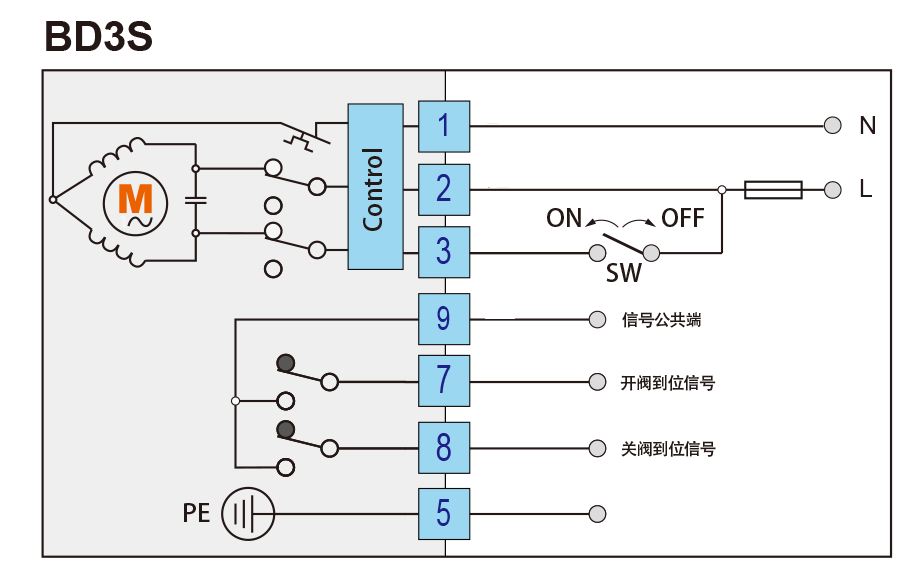 SW斷開,電動(dòng)執(zhí)行器將順時(shí)針旋轉(zhuǎn),到位后9與8接通,給出關(guān)閥到位信號(hào)。