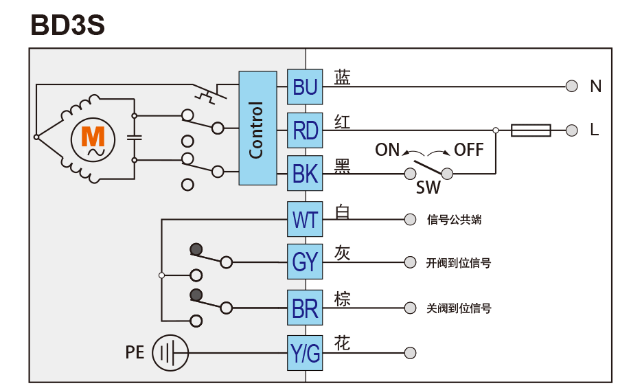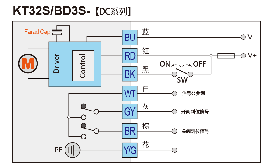 注1:執(zhí)行器運(yùn)行中RD與 BR 、 BK與 GY都處于斷開狀態(tài)。